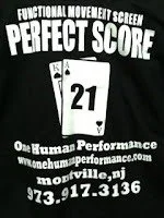 In all of our years of doing screens, our staff has performed the FMS literally thousands of times. We have a board in our facility where we list our “21 Club” of all of the perfect scores we have gotten. We even have a tee shirt you get if you make it on there. (Check it out>>>)